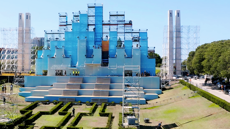 “另一个难点是1974 年康乃馨革命的纪念碑,”Beatriz解释道。 “在设计过程中也必须考虑到这一点。我们将分布在纪念碑周围的荷载转移至在后方搭建的脚手架结构中,不仅在施工过程中,而且在整个活动过程中始终安全可靠地保护纪念碑。”